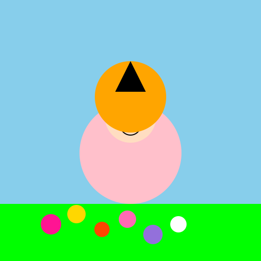 // Drawing a lovely girl surrounded by colorful flowers in a sunny field