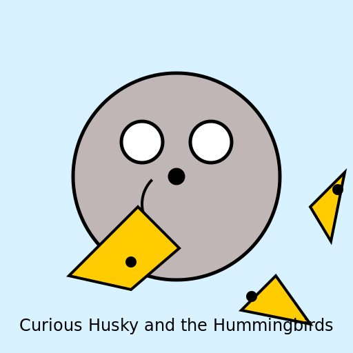 ctx.fillText('Curious Husky and the Hummingbirds', 256, 480);