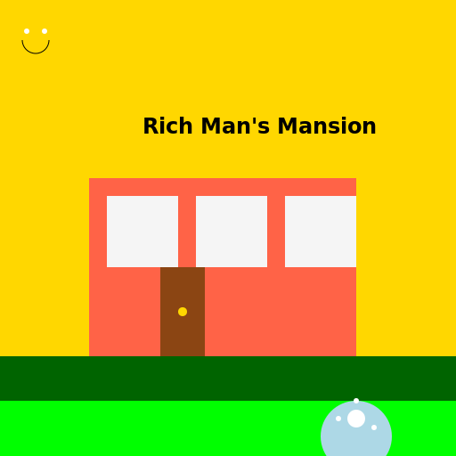 // The rich man has it all, even a fancy mansion and a sunny smile!