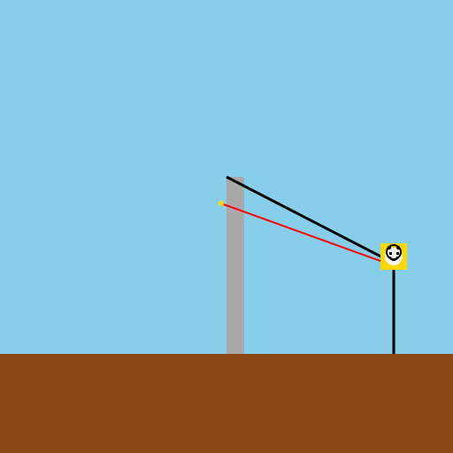 ctx.lineTo(250, 230); // Endpoint at the pole